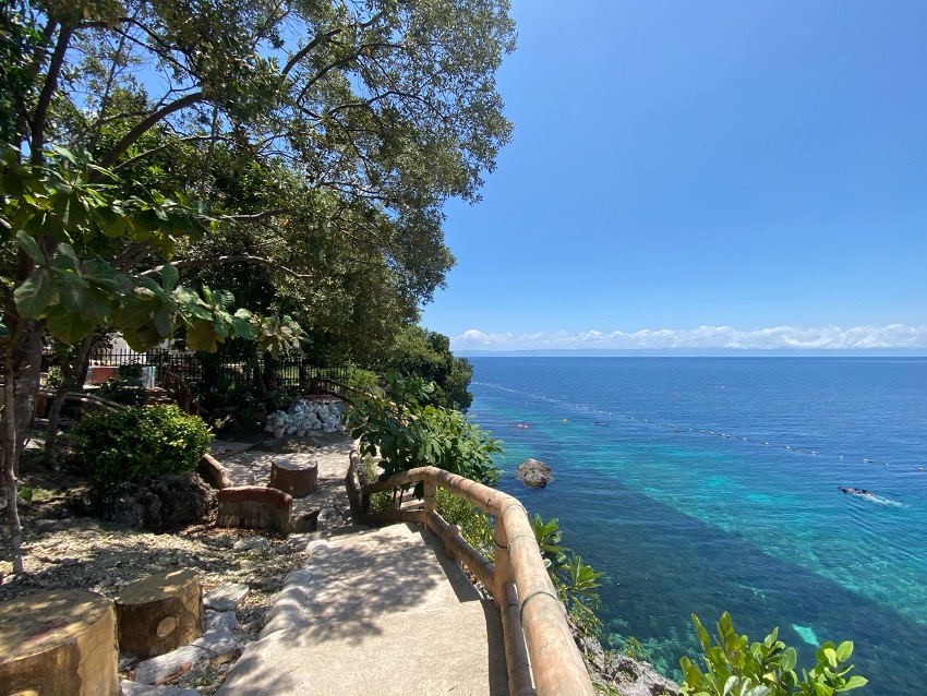 Al día siguiente, tras el incireble subidon del buceo, decidimos pasar nuestro ultimo dia en Bohol de tranquis en la playa y en una zona muy famosa para hacer snorkel: Napaling reef. Fuimos al Almira diving resort, pagamos la entrada y disfrutamos de pasar el dia allí: Mirad que vistas y que snorkel!!