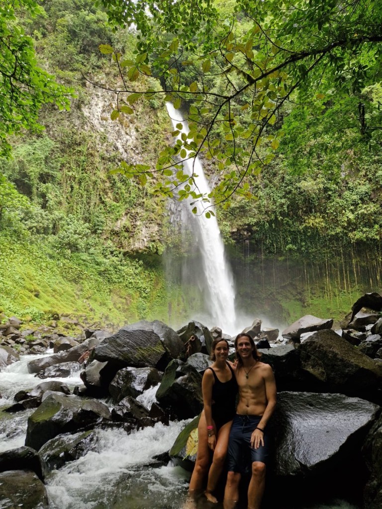 Hoy tenemos viaje de nuevo, desde volcán Arenal hasta Monteverde. Pero antes de dejar la zona, nos acercamos a ver la cascada La Fortuna.