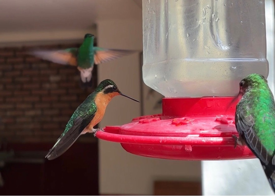 A la entrada del parque hay un colibriario, perfecto para poder ver algunos ejemplares de las más de 50 especies de este pájaro que existen en el país. Del techo cuelgan varios bebederos rellenos de agua o néctar, donde esos bonitos animales acuden a beber, para suerte nuestra que así podemos verlos de cerca.