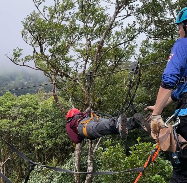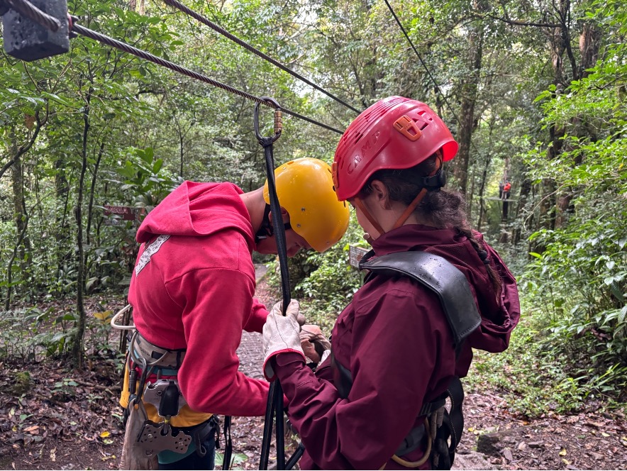 El parque cuenta con un total de 10 tirolinas. Las primeras son algo más cortas y con menos inclinación, para irle cogiendo el truco a eso de frenar con los guantes, la postura que llevar para no dar mil vueltas… Poco a poco las van haciendo más largas hasta llegar a la penúltima, ¡la más larga del parque y una de las más largas de Sudamérica con 1590 metros!