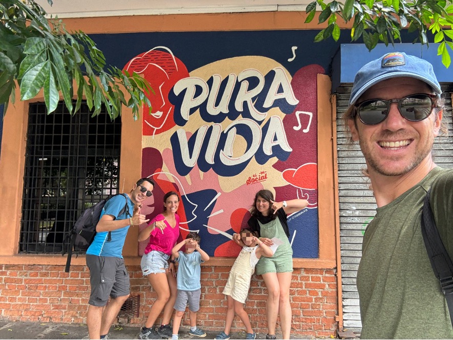 Cuando llegamos al pueblo está diluviando. Nos comemos un guiso calentito típico del país y nos vamos directamente al hotel, donde nos recibe Ro, un señor encantador, nacido en Italia pero que, después de todas las vueltas que le ha dado la vida, le ha llevado hasta este pueblecito de Costa Rica y que hace muchísimas migas con nosotros, en especial con los pequeños.