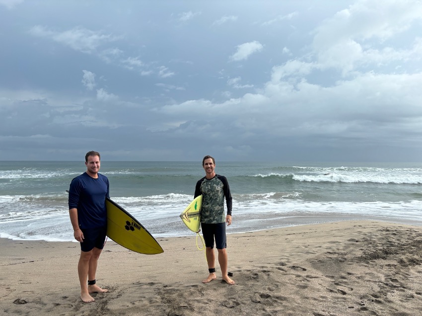Por la tarde, Carlos y Peter alquilan unas tablas y se van un rato al agua a hacer surf mientras Maca y Scheherezade nos quedamos de charloteo en la playa.