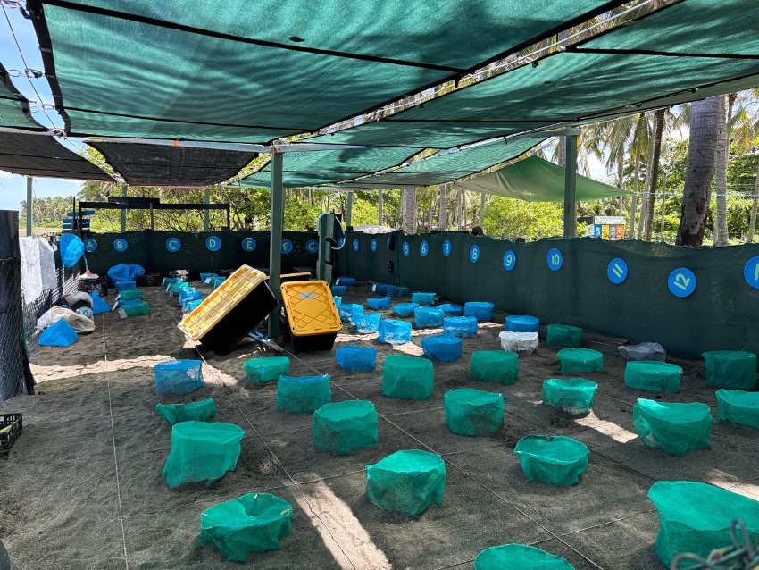 Pues resulta que hoy, por fin, cuando estamos comiendo, Valerie nos escribe para decirnos que la anidada que tenían incubando han eclosionado justo hoy por la mañana. Sin pensárnoslo dos veces, recogemos rápidamente, cogemos los móviles cargados y nos vamos rápidamente hasta la playa donde están ya preparando la liberación.