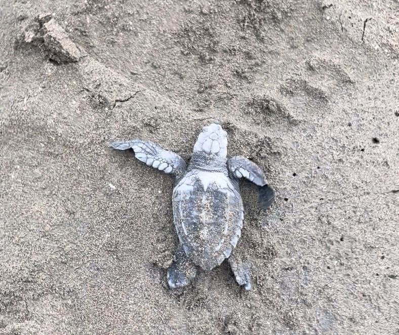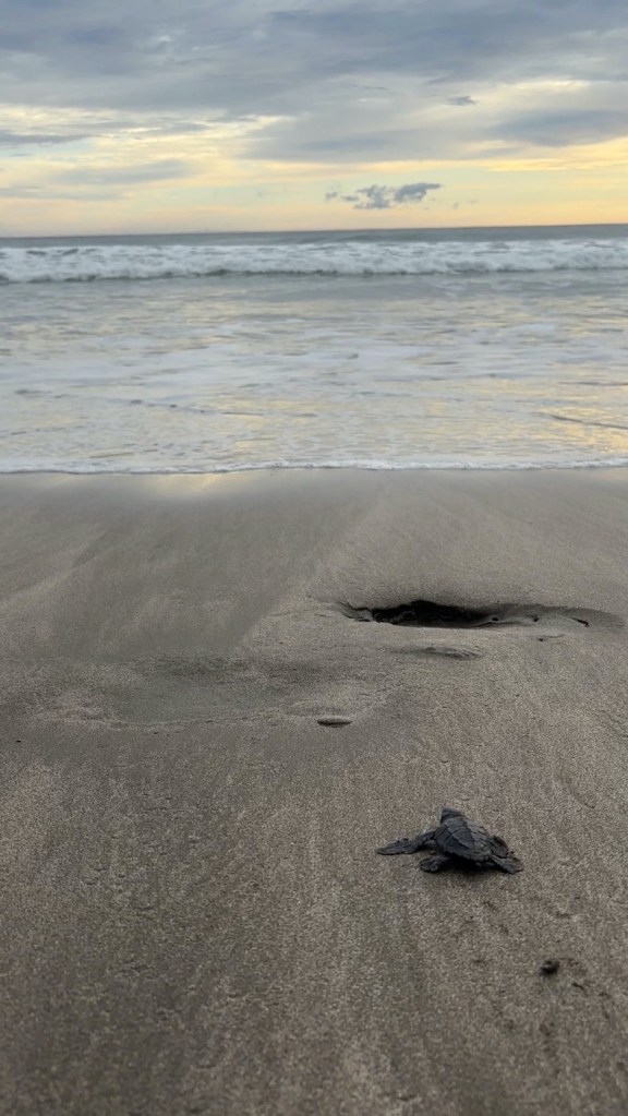 Lo que hemos visto, el momento que hemos vivido, en la playa, con un cielo súper bonito, y todas las tortuguitas pequeñas avanza ando poquito a poco por la arena hasta llegar al enorme océano… ha sido precioso.
