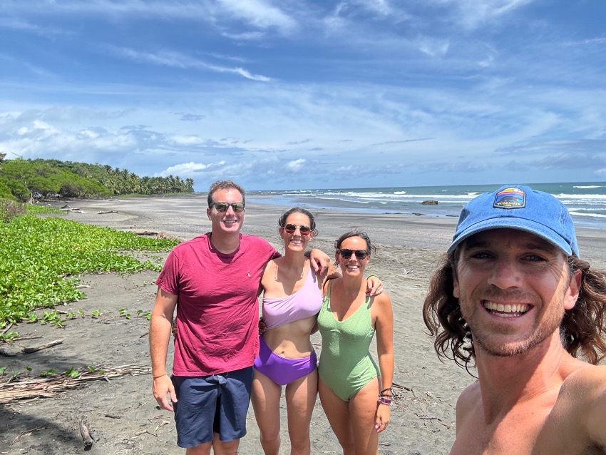 Comemos y volvemos a Playa Negra, a ver si Peter y Carlos tienen un último baño de surf de despedida. Pero nada, el mar sigue bastante plano, por lo que nos quedamos todos en la playa dándonos un bañito y disfrutando del último atardecer aquí en Costa Rica.