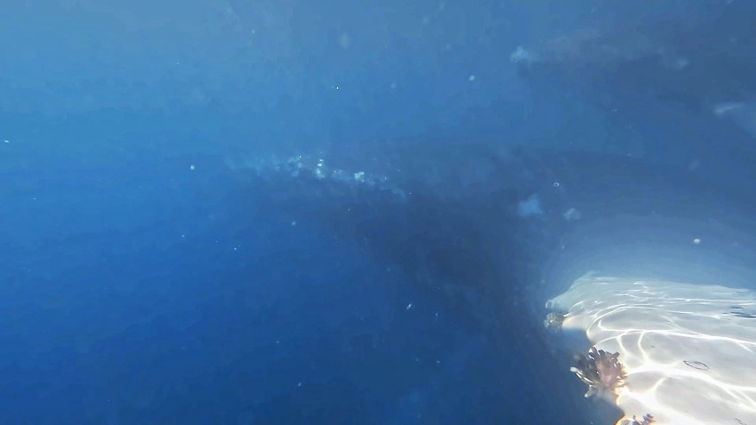 Es en ese momento cuando Scheherezade le dice al patrón que si puede saltar. De primeras él se queda un poco atónito por la pregunta, por lo que insiste de nuevo sin darle tiempo a que se lo piense mucho. Dice que bueno, que como quiera, pero que él no saltaría, pero que si ella quiere… que por qué no. Suelta corriendo la cámara, se quita la ropa (menos mal que llevaba el bañador puesto), coge la GoPro y las gafas de buceo y ¡al agua patos!