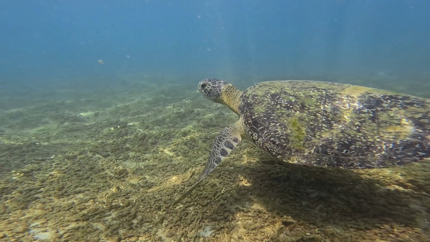 Aprovechamos para hacer también un poquito de snorkel y vemos varios pececitos de colores y volvemos a encontrarnos con una de nuestras amigas las tortugas (nunca nos cansaremos de verlas).