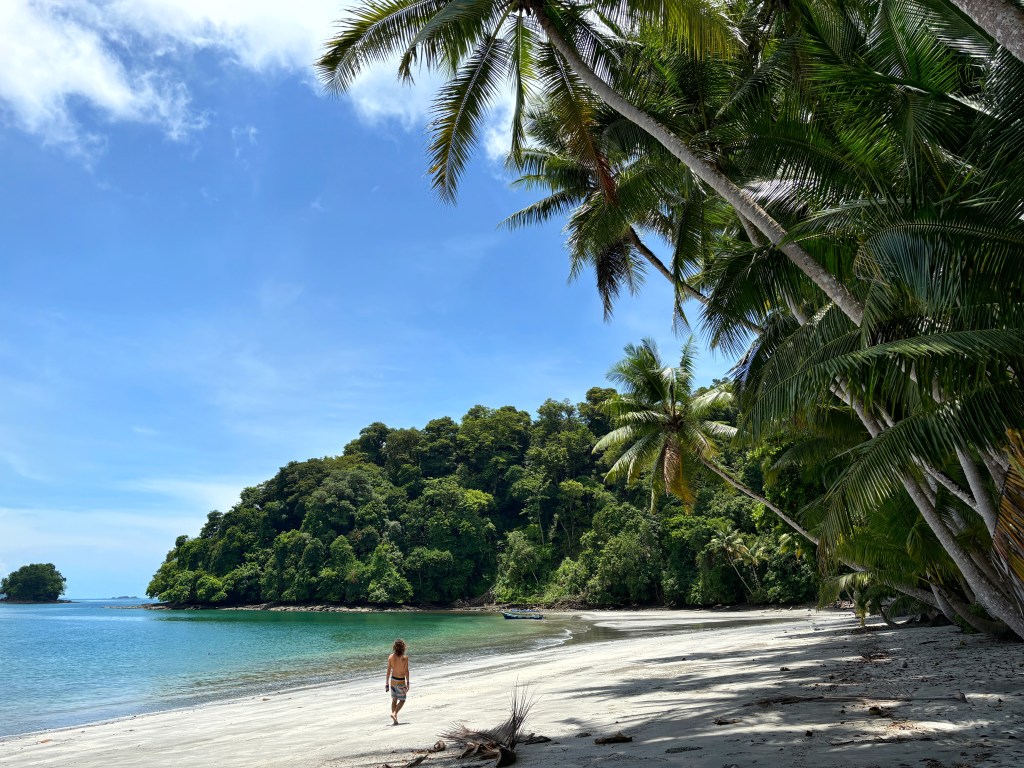 Llegamos a isla Bolaños, la que dicen más paradisíaca de las tres al tener la arena blanca y no podemos más que enamorarnos nada más que ponemos un pie en ella. Es completamente virgen, es todo vegetación frondosa, preciosas palmeras y aquí es donde pasamos la siguiente hora.